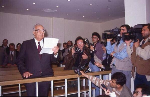 Fotoğraf 23 Ocak 1995 günü çekilmiş. Fotoğraf gazeteci Sadık Güleç'e ait. Yaşar Kemal Beşiktaş Adliyesi'nde mahkeme salonunda. Der Spiegel dergisine yazdığı “Yalanlar Seferi” başlıklı yazısı nedeniyle yargılanıyor. Dava Devlet Güvenlik Mahkemesi’nde (DGM) görülüyor. Savunmasını verirken onu izleyen gazetecilerin arasında Metih Göktepe de var. Teybini olabildiğine uzatmış, dikkatle bakıyor Yaşar Kemal’e; söylediği her sözün altına imza atacakmışçasına. Haftalık Gerçek dergisi için oradalar; Sadık Güleç, Metin'e "Sen teybi tut, fotoğrafları ben çekerim" dediğini söylüyor.