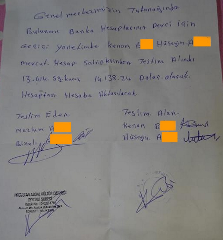 CAN TV'de birçok kez Zeynel Gül'ün konuğu olarak sahne alan İbrahim K. özel sosyal medya hesabı üzerinden illegal olarak Edremit PSAKD eski ve güncel dernek yönetiminin maddi varlık devir teslim tutanağının BELGESİNİ paylaştı.