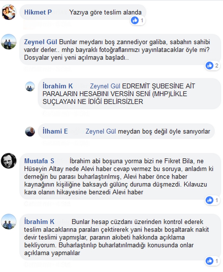Zeynel Gül kliğinin Edremit PSAKD şubesini ve MHP'li Mehmet Şahin'i eleştirdiği için şube Genel Sekreteri Hüseyin Altay'ı hedef alarak mevcut yöneticilerin teslim aldıkları Dernek parasını ''buharlaştırdıklarını'' iddia ettiler.